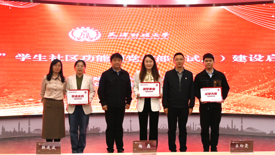 随后,杨磊、韩廷波、宋玲霞分别为“经贸先锋”、“学术尖兵”、“逐梦青春”功能型党支部书记授牌。