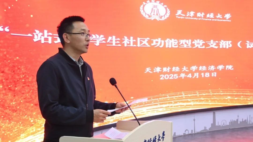 经济学院党委书记韩廷波宣读了在学院内组建“经贸先锋”、“学术尖兵”、“逐梦青春”三个功能型党支部的决议,并对我院“一站式”学生社区功能型党支部建设提出三点要求:一是全体师生要提高政治站位,深刻领悟“一站式”学生社区功能型党支部建设的重要意义;二是要团结学院师生力量,共同推动育人资源下沉到学生社区;三是要创新工作举措,深化“一站式”学生社区赋能学生成长途径。