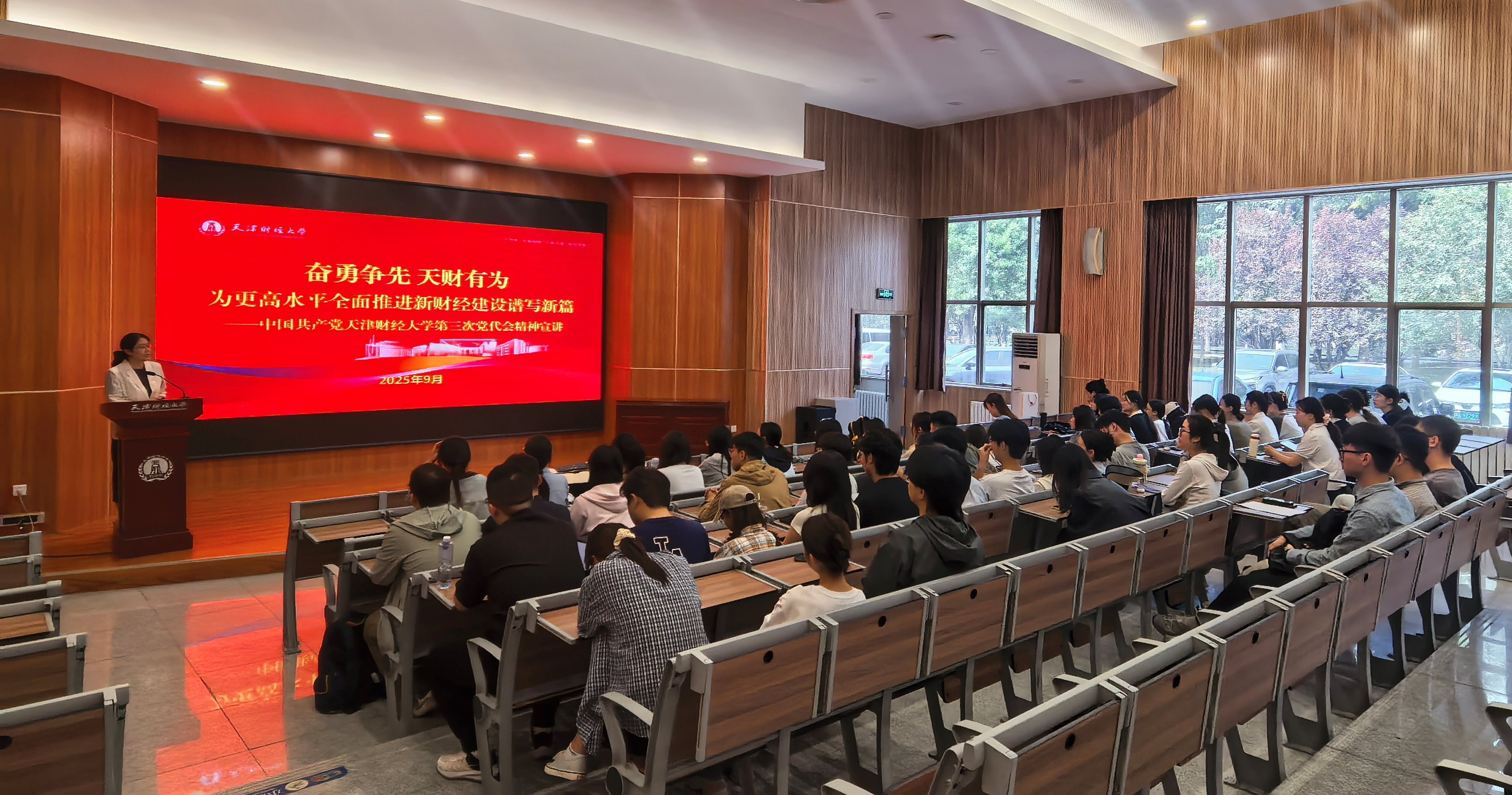 为深入学习贯彻学校第三次党代会精神,切实将全院师生思想行动统一到大会决策部署上来,9月26日至28日期间,学院党委书记单喆先后面向全院教职工、学生骨干及学生党员开展专题宣讲,系统解读大会精神实质,明确新财经建设的目标任务及落实路径,为学院高质量发展凝聚奋进力量。